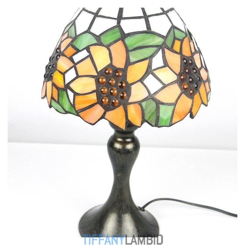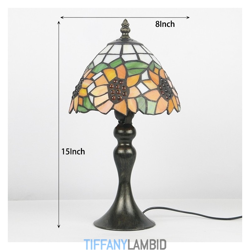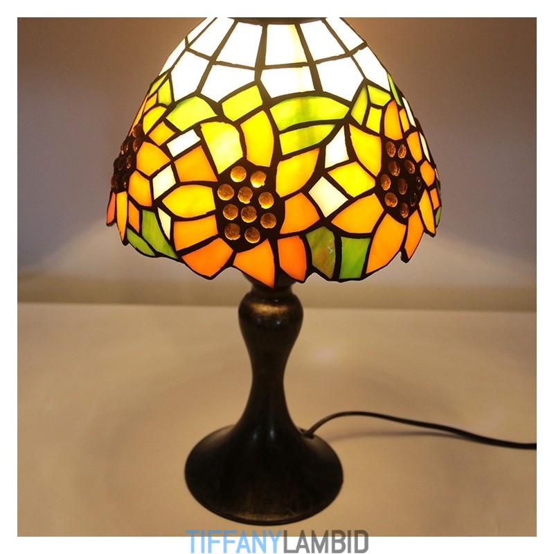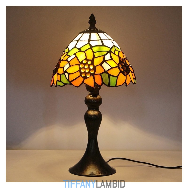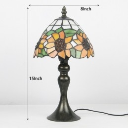 Tiffany vitraažstiilis kirjutuslaud helekollane päevalillevalgustiga laud lugemiseks öövalgusti W8H15 tolli